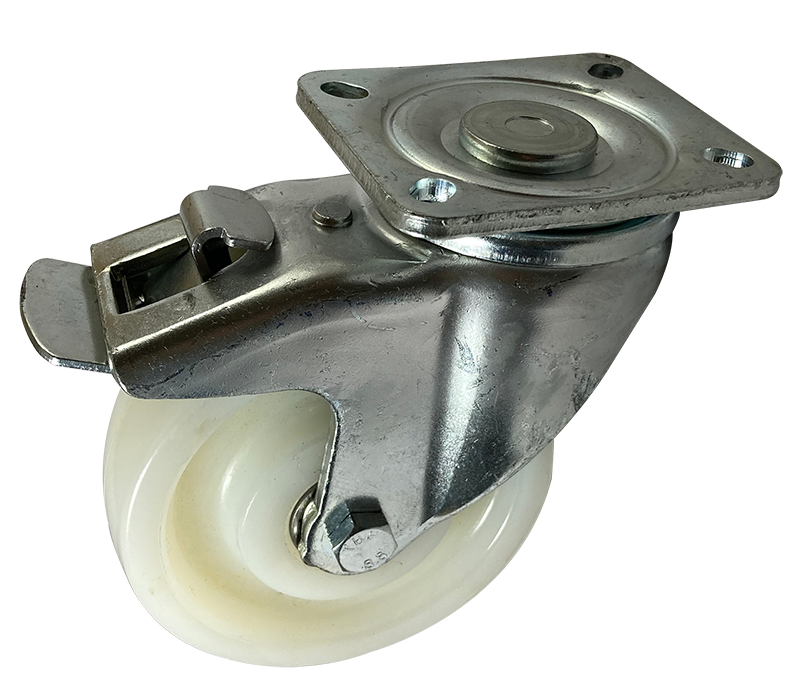 | 4” x 2” | 200 | White Nylon | 360° Swivel | Zinc-Plated Steel | Wheel & Swivel Lock |